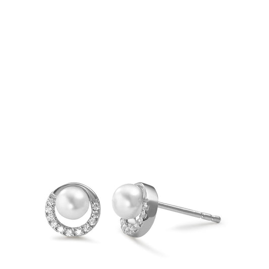 Oorknoppen Zilver Zirkonia Rosé Verguld zoetwater Parel wit, 2 Parels Ø9 mm