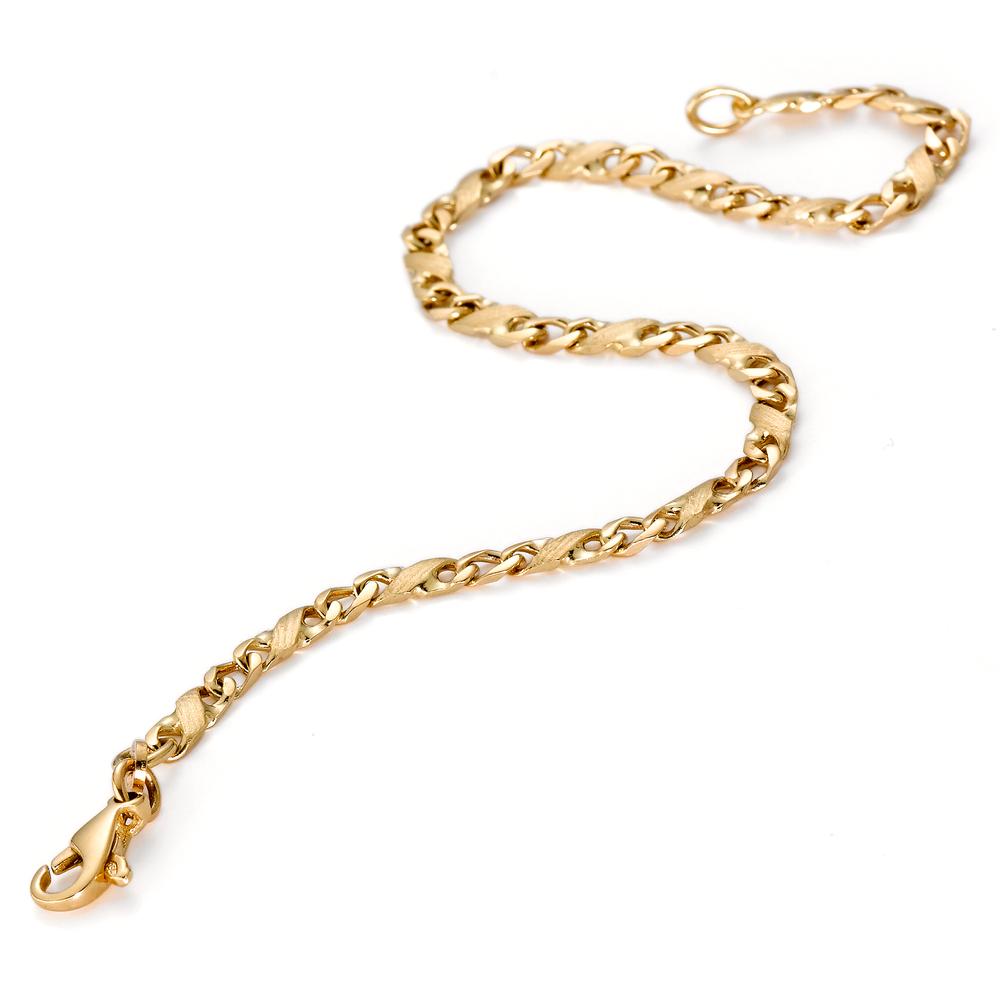Elegant damesarmband van hoogwaardig 18-karaats geelgoud (750). Het verfijnde ontwerp met een mix van glanzende en matte schakels maakt dit sieraad tijdloos en perfect voor elke gelegenheid. Een must-have voor elke stijlvolle vrouw.
