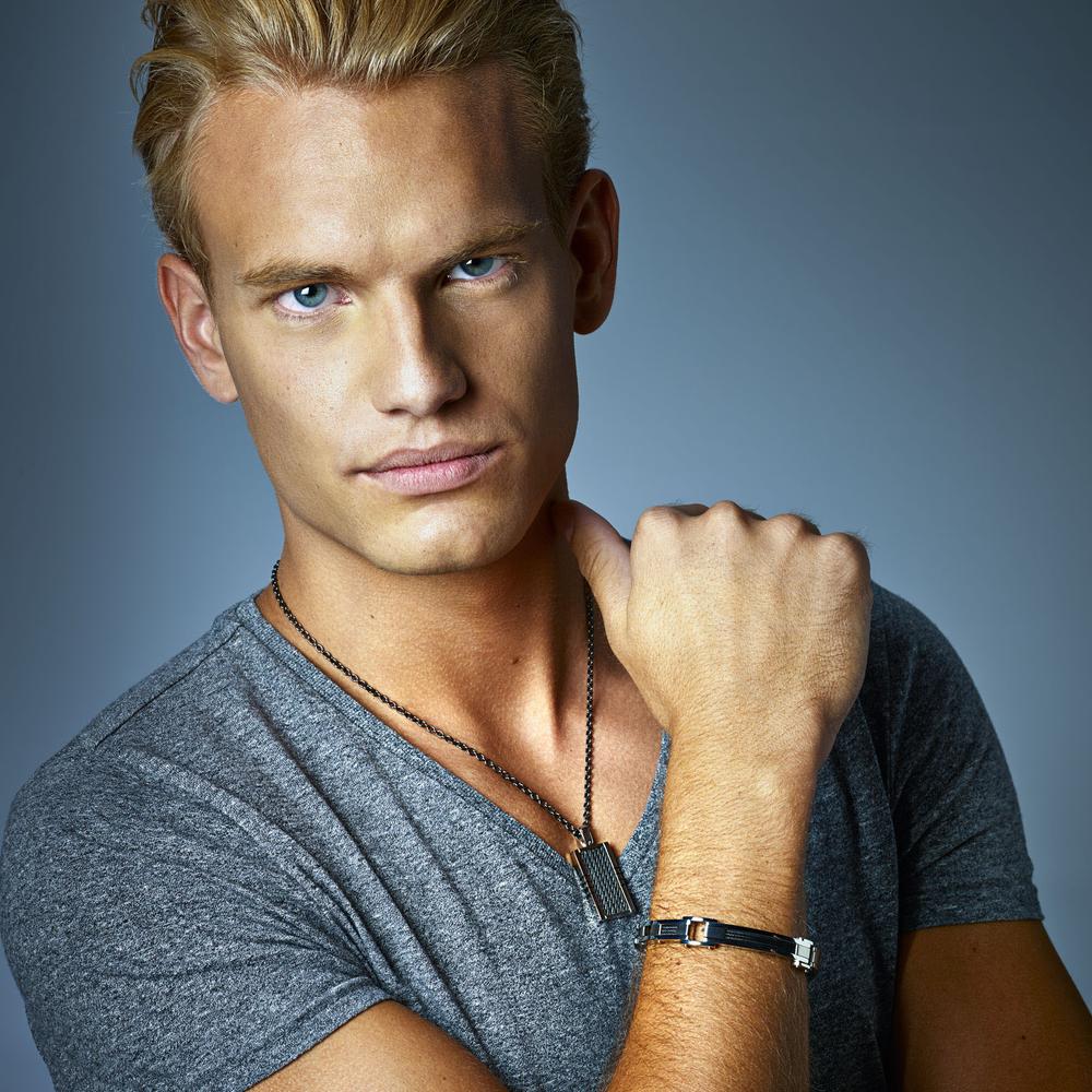 Stoere heren halsketting van hoogwaardig roestvrij staal met een rechthoekige hanger in zwart en zilverkleurig design. Tijdloos en robuust, perfect voor dagelijks gebruik of speciale gelegenheden. Duurzaam, onderhoudsvriendelijk en comfortabel om te dragen.