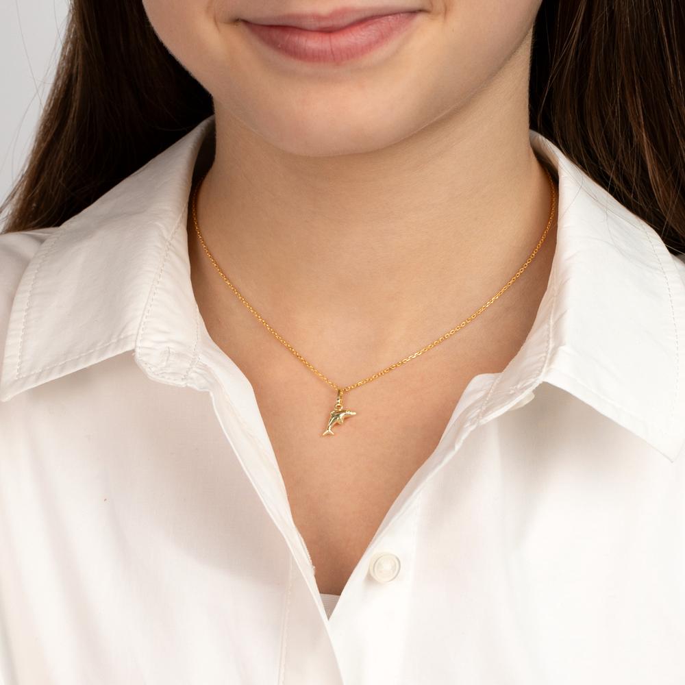 Schattige meisjesketting met een fijne zilveren ketting en een speelse dolfijnenhanger. Perfect voor elke dag en een prachtig cadeau voor kleine dierenliefhebbers. Stijlvol en duurzaam, een mooie toevoeging aan elke kinderkleding.