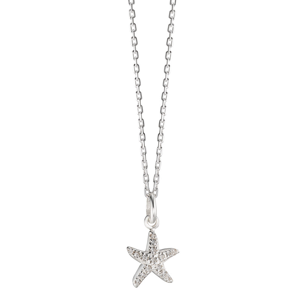 Stijlvolle dameshalsketting van zilver met een schattige zeesterhanger bezet met fonkelende zirkonia's. Perfect voor elke gelegenheid, brengt deze ketting een vleugje maritieme elegantie en sprankeling aan je look. Een tijdloos sieraad om te koesteren.