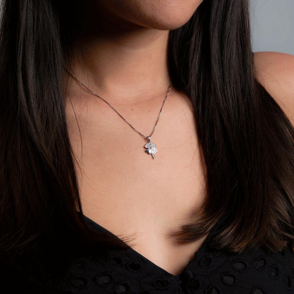 Collier met hanger Zilver Zirkonia Klaver 42 cm