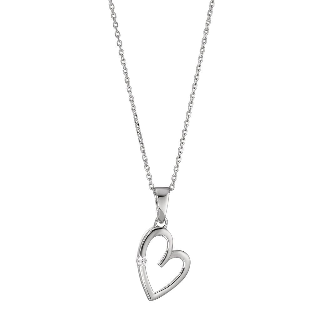 Collier met hanger Zilver Zirkonia wit Gerhodineerd Hart 40-42 cm