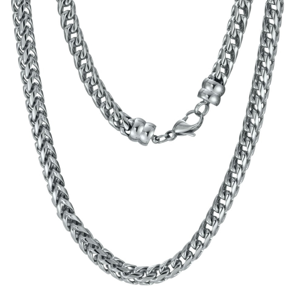 Stijlvolle ketting van hoogwaardig roestvrij staal. Dit collier heeft een tijdloos ontwerp met een stevige schakelstructuur en een veilige karabijnsluiting. Duurzaam en elegant, perfect voor dagelijks gebruik en speciale gelegenheden. Vrouwelijk en mannelijk draagbaar.