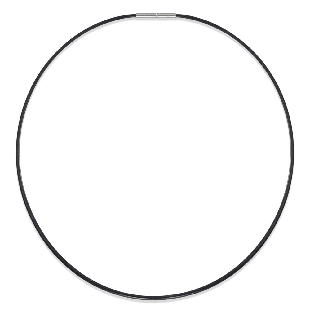 Elegante damescollier van duurzaam rubber met een fijne sluiting van roestvrij staal. Dit minimalistische en moderne sieraad is licht van gewicht en comfortabel om te dragen, perfect voor dagelijks gebruik of bijzondere gelegenheden. Tijdloos design voor iedere stijl.