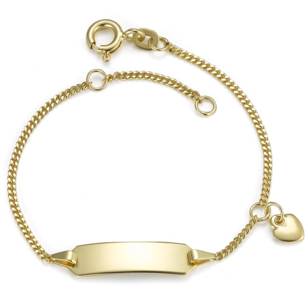 Prachtig baby gravurarmband van 585 geelgoud met een lief hartje. Dit fijne armbandje is perfect om te personaliseren met een naam of bijzondere datum. Een tijdloos en kostbaar geschenk voor de allerkleinsten, gemaakt van hoogwaardig goud voor een zachte, duurzame uitstraling.
