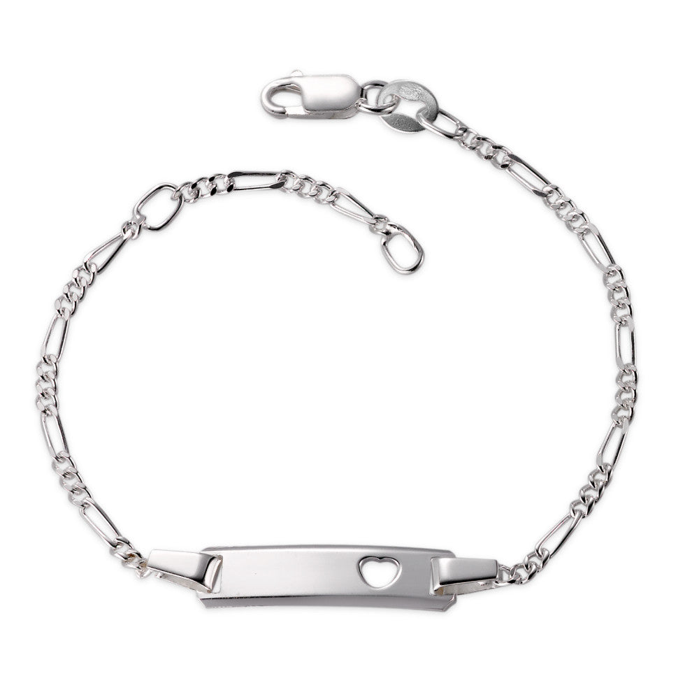 Schattig zilveren baby armband met gravureplaatje en hartvormige uitsnede. Perfect om een naam of speciale datum op te laten graveren als blijvende herinnering. Licht en comfortabel, ideaal voor dagelijkse draagbaarheid. Een prachtig cadeau voor pasgeborenen.