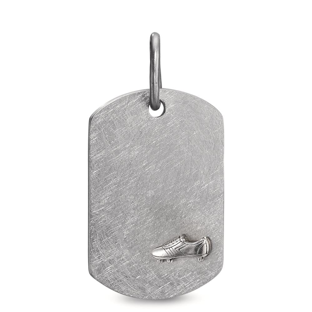 Stoere gravurehanger voor heren, gemaakt van zilverkleurig roestvrij staal. De hanger heeft een robuuste legerdogtag-vorm met een kleine voetbalschoen als decoratie. Perfect voor sportliefhebbers die een persoonlijk tintje willen dragen. Duurzaam en stijlvol!