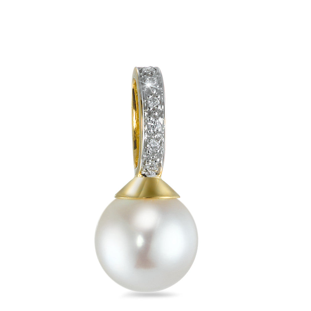 Hanger 750/18K geel goud Diamant 0.04 ct, 6 Steen, w-si zoetwater Parel, 9 mm