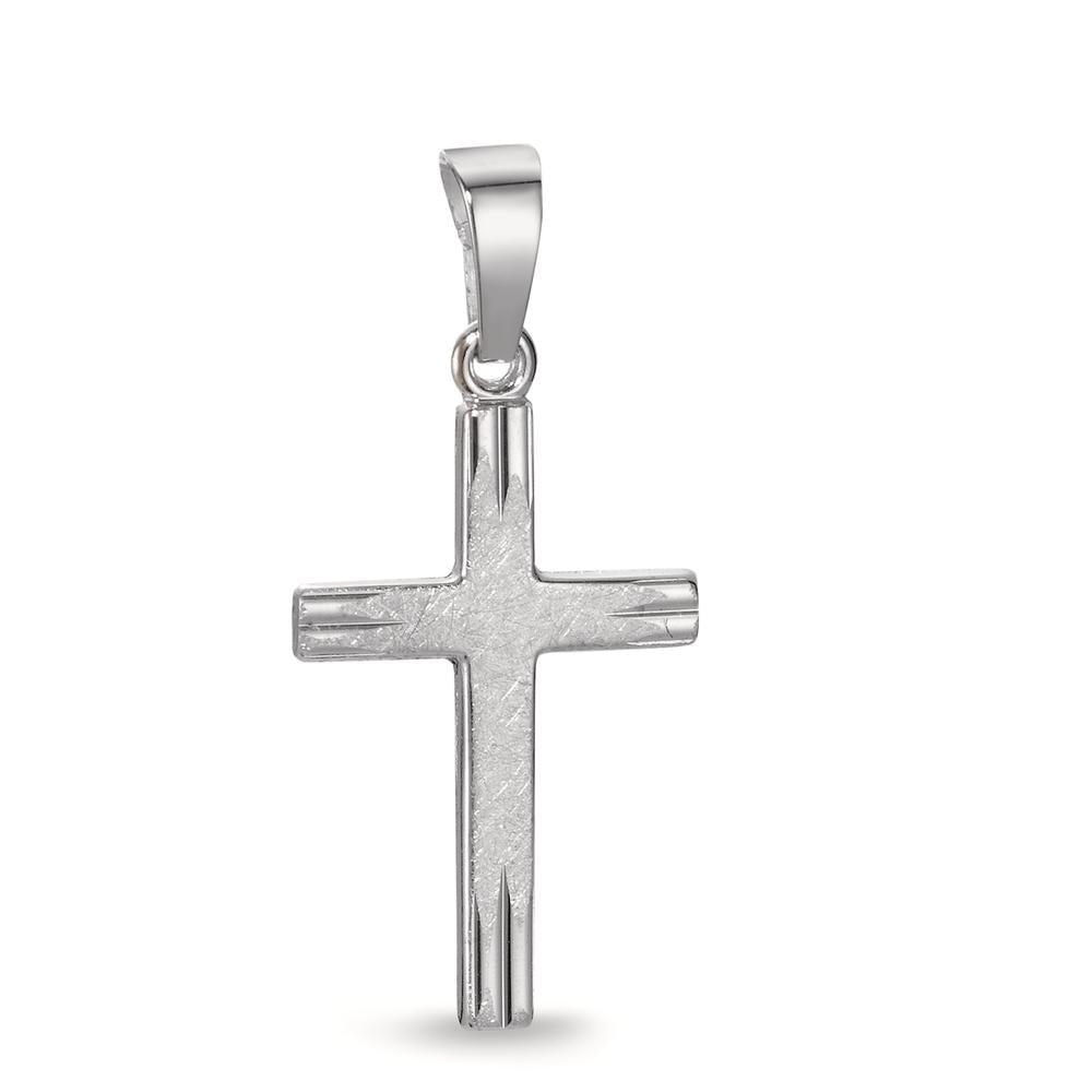 Deze elegante hanger is gemaakt van 18 karaat witgoud (750) en heeft de klassieke vorm van een kruis. Het subtiele, matglanzende oppervlak en de fijne gravures geven het sieraad een tijdloze uitstraling. Perfect als betekenisvol geschenk of voor dagelijks gebruik.