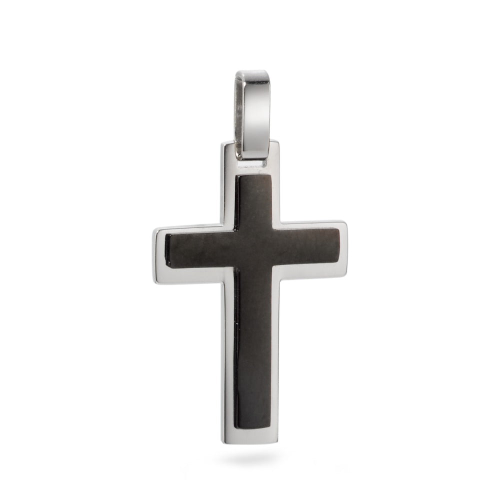 Stoere heren hanger in de vorm van een kruis, gemaakt van duurzaam roestvrij staal. Het contrast tussen de zwarte en glanzende zilverkleurige afwerking geeft de hanger een moderne en tijdloze uitstraling. Perfect voor dagelijks dragen en als stijlvol accessoire.