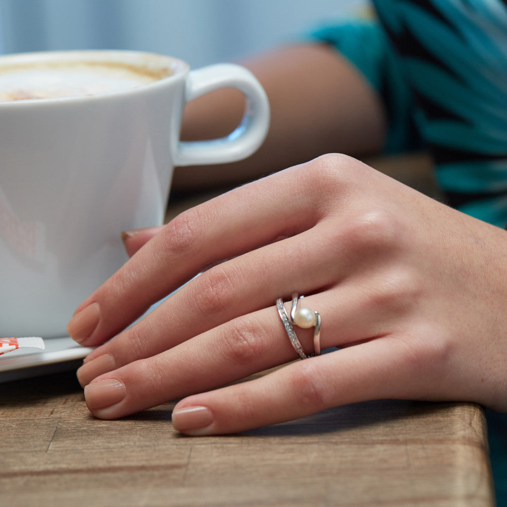 Memory ring Zilver Zirkonia wit Gerhodineerd