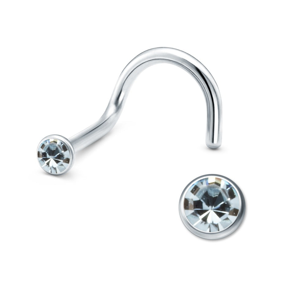Elegante dames neuspiercing gemaakt van roestvrij staal met een schitterende kristalsteen. Dit subtiele neussteentje is hypoallergeen, duurzaam en perfect om dagelijks te dragen. Voeg een sprankelende touch toe aan je look met dit stijlvolle en comfortabele sieraad.