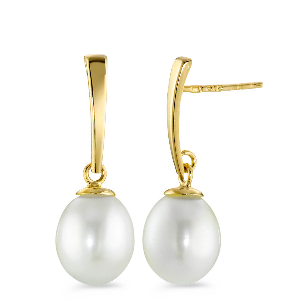 Oorbellen 375/9K geel goud zoetwater Parel wit, 2 Parels