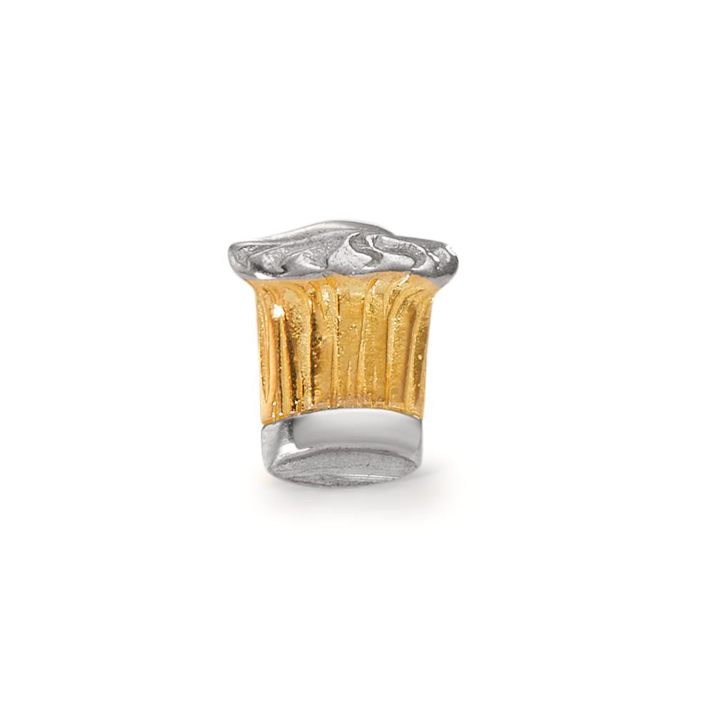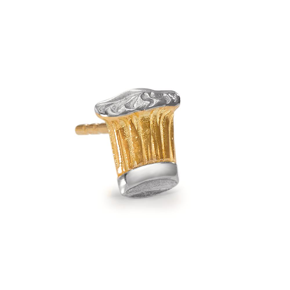 Stoere heren oorsteker in de vorm van een koksmuts, gemaakt van 750 geelgoud met zilverkleurige accenten. Dit unieke accessoire combineert vakmanschap en stijl, perfect voor de passievolle kok of als bijzonder geschenk. Eén stuk beschikbaar.