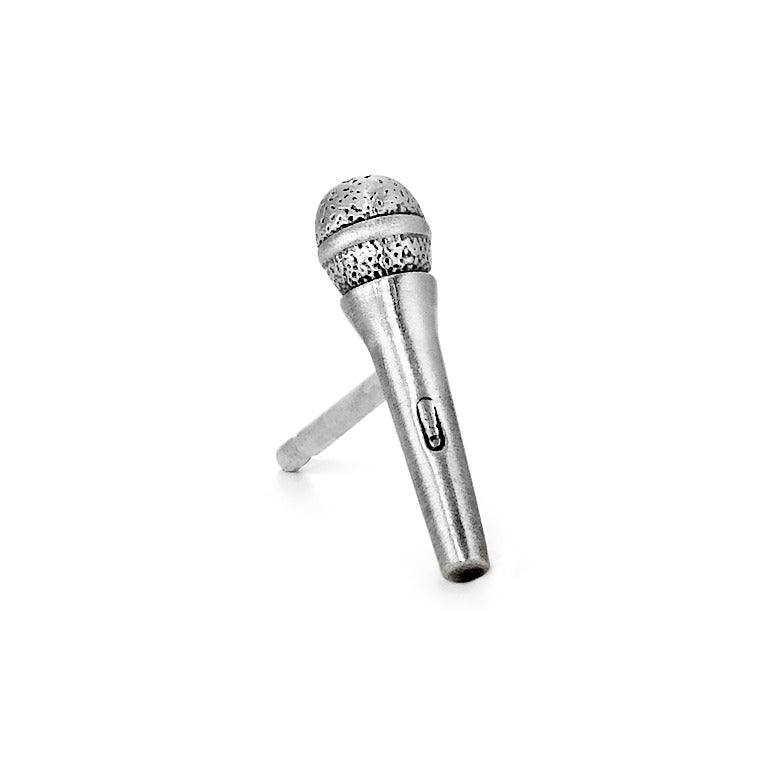 Stoere heren oorbel in de vorm van een microfoon, vervaardigd uit hoogwaardig zilver. Dit unieke design is perfect voor mannen die van muziek houden en hun persoonlijkheid willen uitdrukken. Leverbaar per stuk voor een opvallende en stijlvolle look.