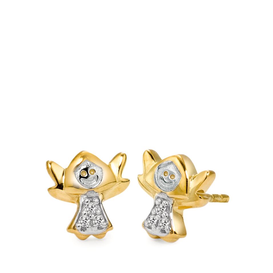 Oorknoppen 375/9K geel goud, 375/9K witgoud Zirkonia 6 Steen Bi-color Engel