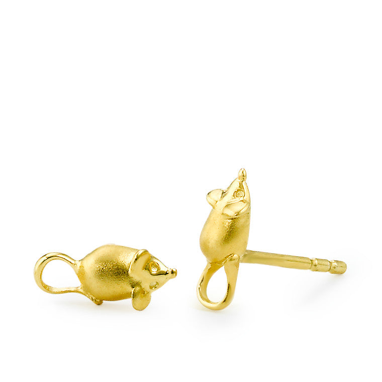 Schattige muis oorbellen gemaakt van 375 geelgoud. Deze fijne studs zijn perfect voor dagelijks gebruik en geven een speelse touch aan elke outfit. Ideaal voor liefhebbers van unieke en subtiele sieraden met een bijzondere twist. Lichtgewicht en comfortabel om te dragen.