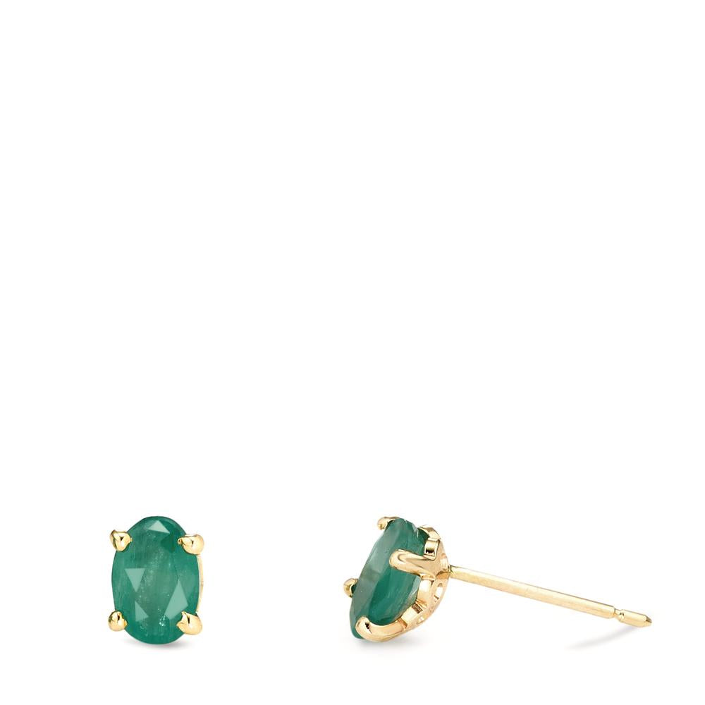 Oorknoppen 375/9K geel goud Smaragd 2 Steen
