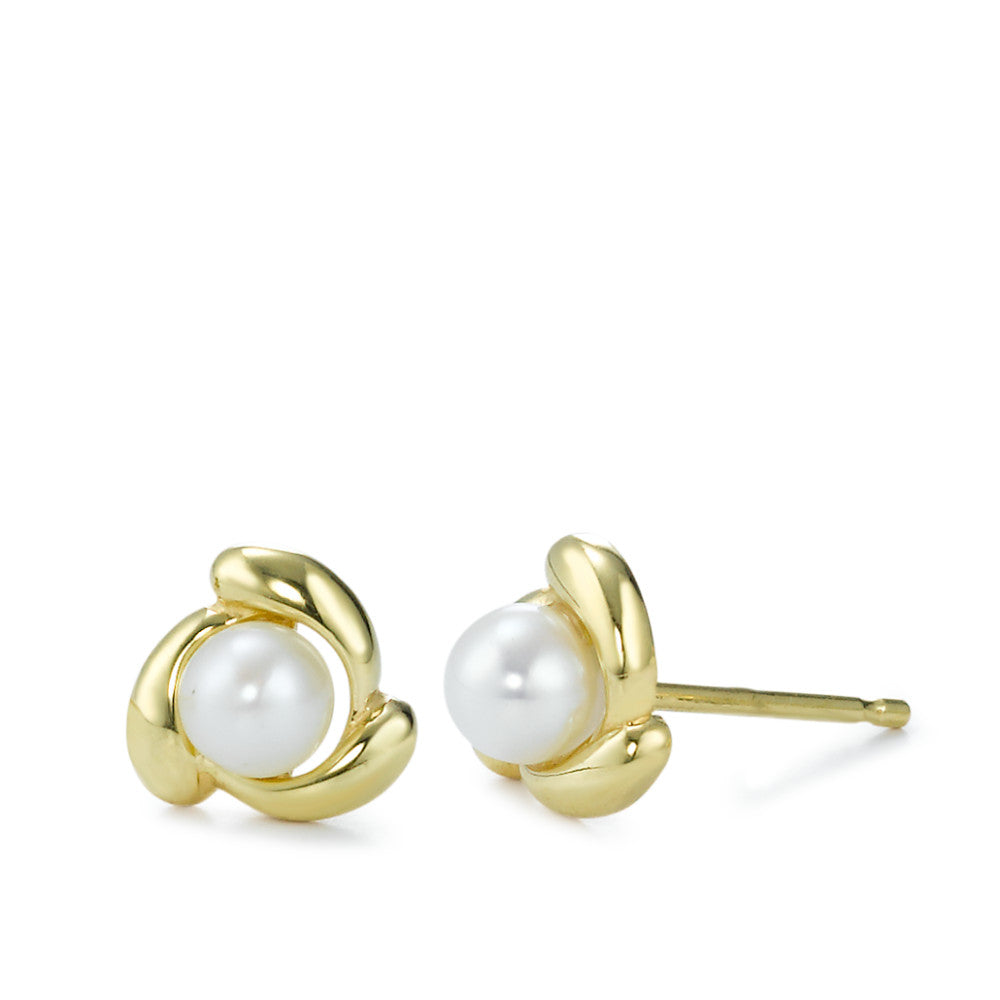Oorknoppen 750/18K geel goud zoetwater Parel wit, 2 Parels, 4.5 mm