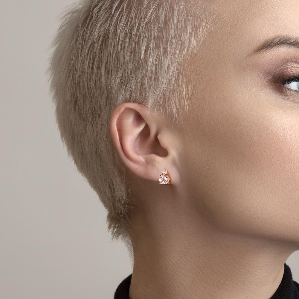 Oorknoppen 750/18K rood goud Morganiet roze, 2 Steen, Diamant 0.05 ct, 2 Steen, w-si