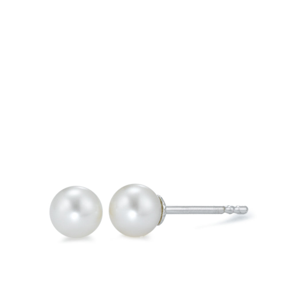 Oorknoppen 750/18K witgoud zoetwater Parel wit, 2 Parels, 5.5 mm