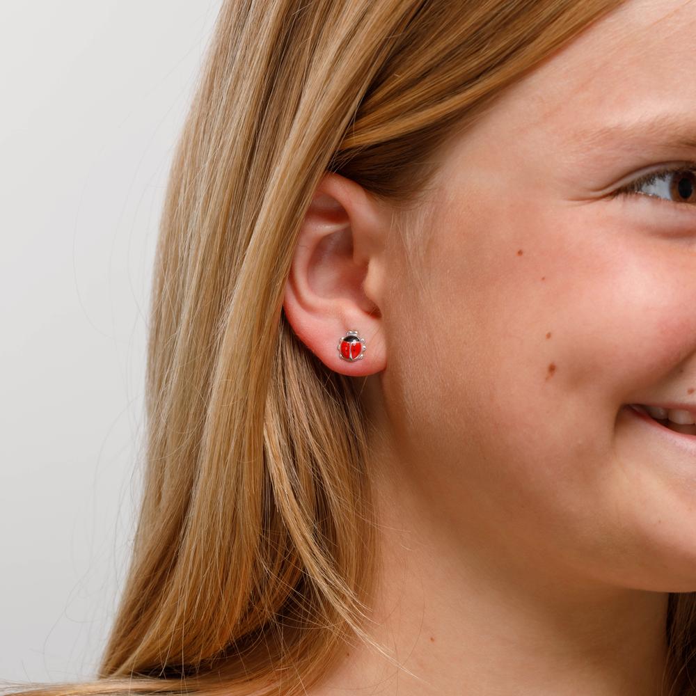 Schattige zilveren oorstekers voor meisjes met een lieve lieveheersbeestje-ontwerp. Perfect om elke outfit op te fleuren, deze oorbellen combineren speelsheid en elegantie. Gemaakt van hoogwaardig zilver, veilig en comfortabel voor dagelijks dragen.