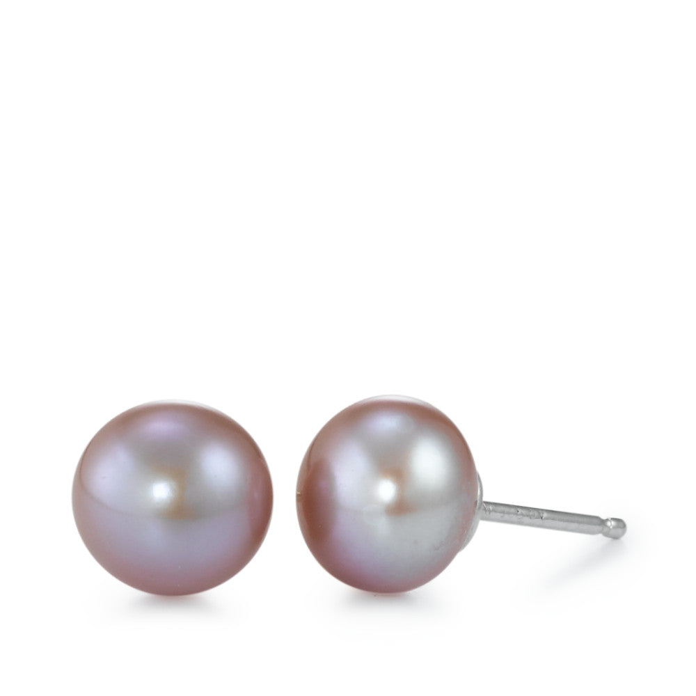 Oorknoppen Zilver Gerhodineerd zoetwater Parel roos, 2 Parels 9-9.5 mm