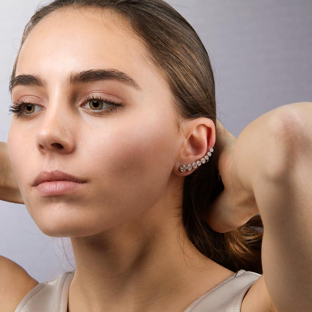 Stijlvolle damesoorstekers van zilver met fonkelende zirkonia. Deze elegante oorstekers zijn perfect voor elke gelegenheid en geven een sprankelende touch aan je look. Het tijdloze ontwerp combineert vakmanschap met modern design voor een vrouwelijke uitstraling.
