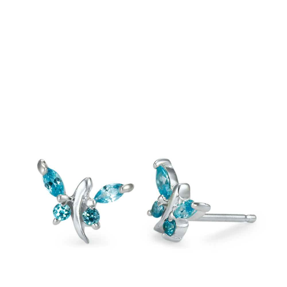 Oorknoppen Zilver Zirkonia blauw, 8 Steen
