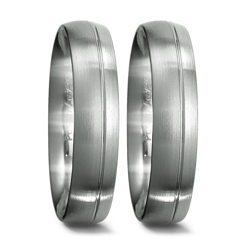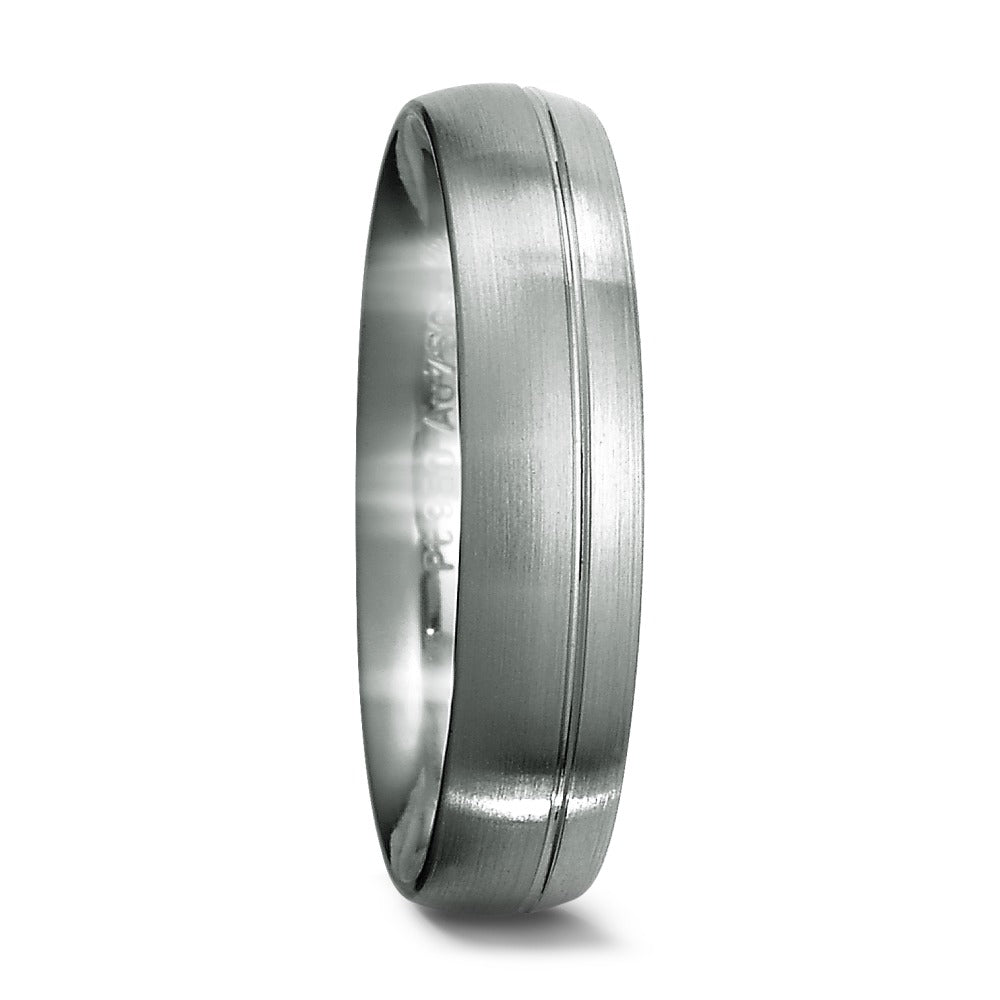 Prachtige partnerring vervaardigd uit 950 platina, bekend om zijn duurzaamheid en zeldzaamheid. Deze elegante ring heeft een matte afwerking met een subtiele, glanzende groef aan de zijkant. Perfect om de blijvende verbinding met uw geliefde te symboliseren.