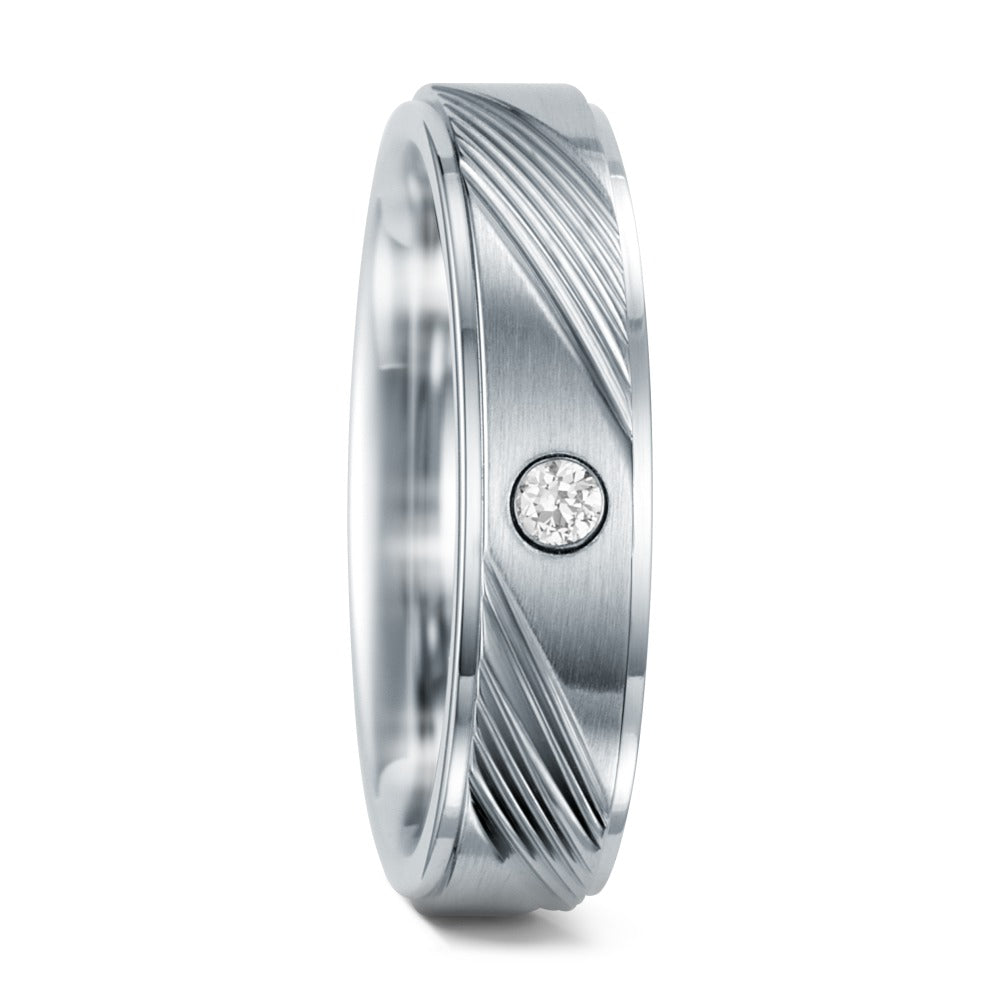 Prachtige dames partnerring van duurzaam roestvrij staal, met een elegante geborstelde afwerking en subtiele lijnen. De ring is voorzien van een schitterende zirkonia steen die fonkelt bij iedere beweging. Tijdloos design, perfect voor elke gelegenheid.