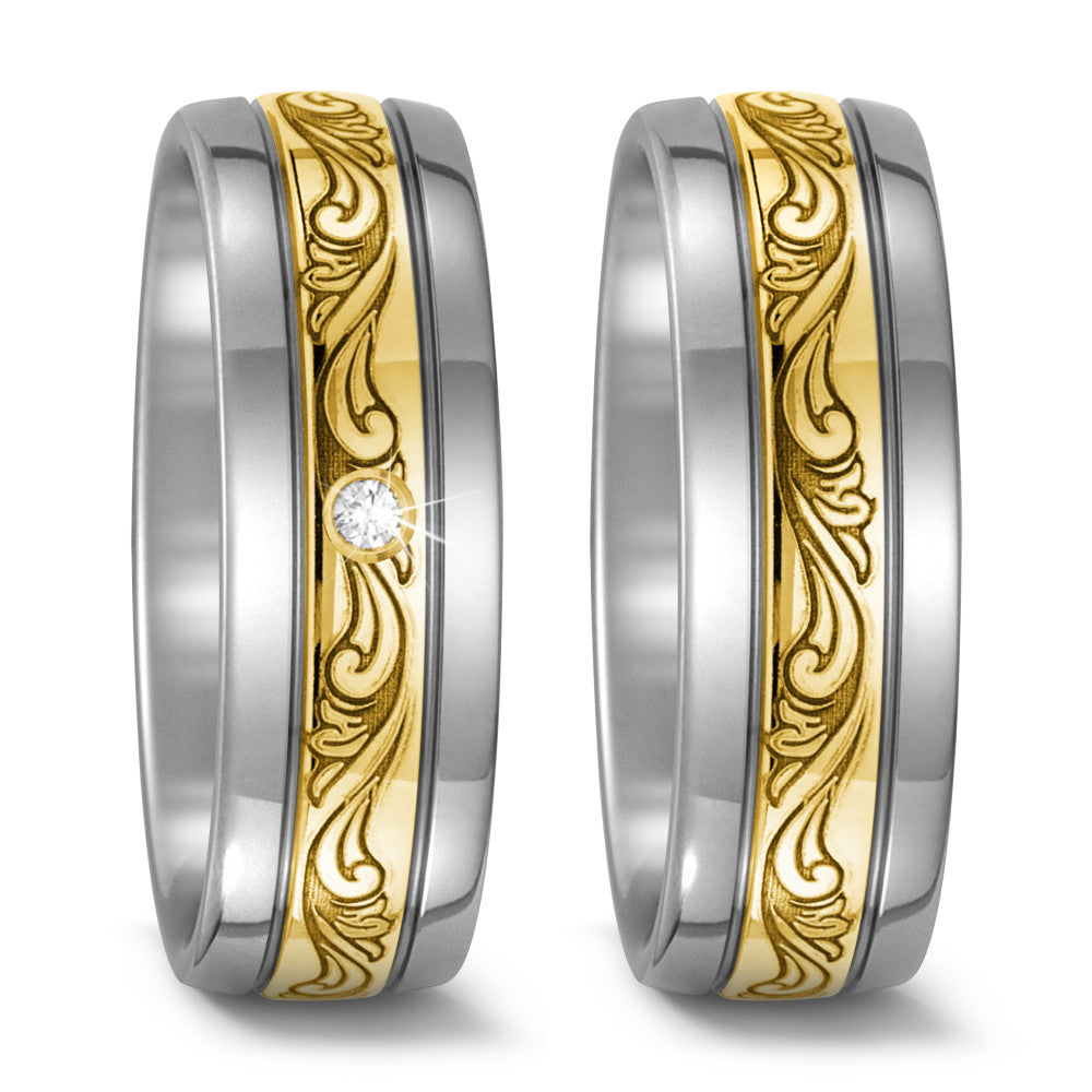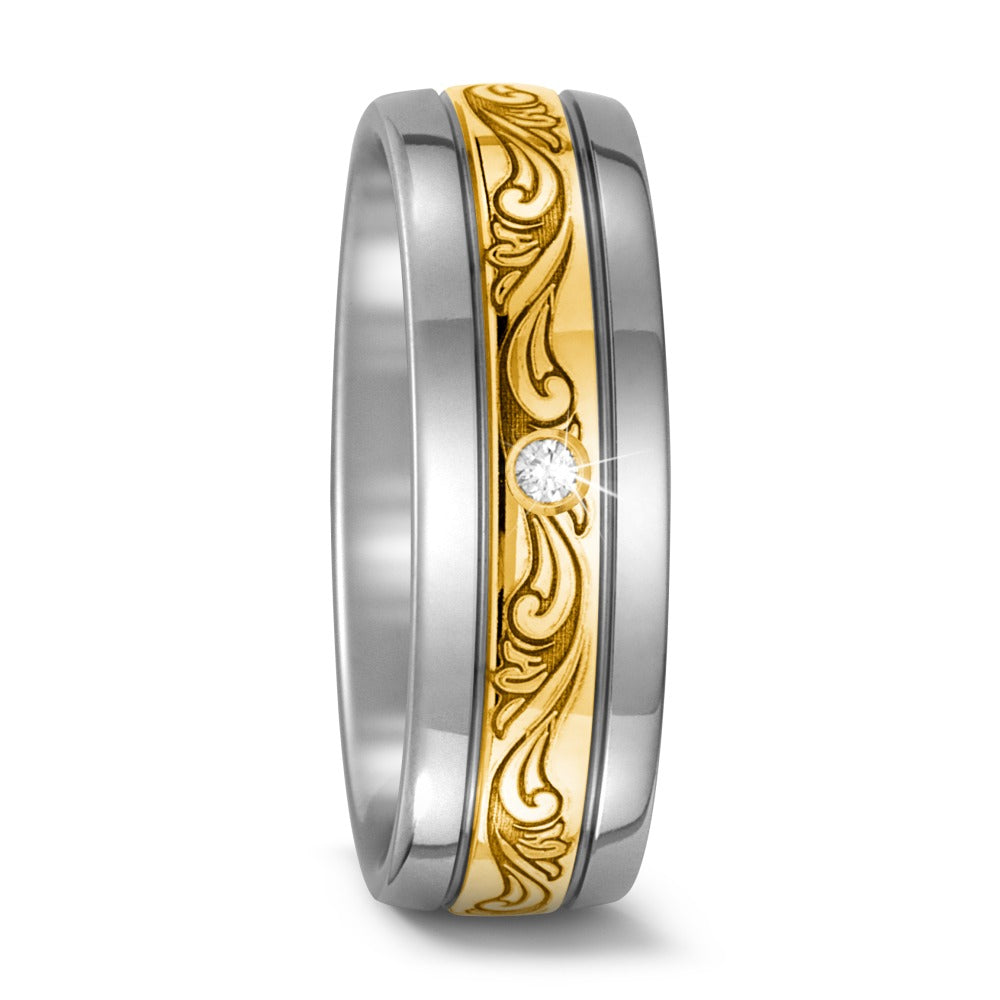 Partnerring Titanium, 750/18K geel goud Diamant 0.03 ct, w-si