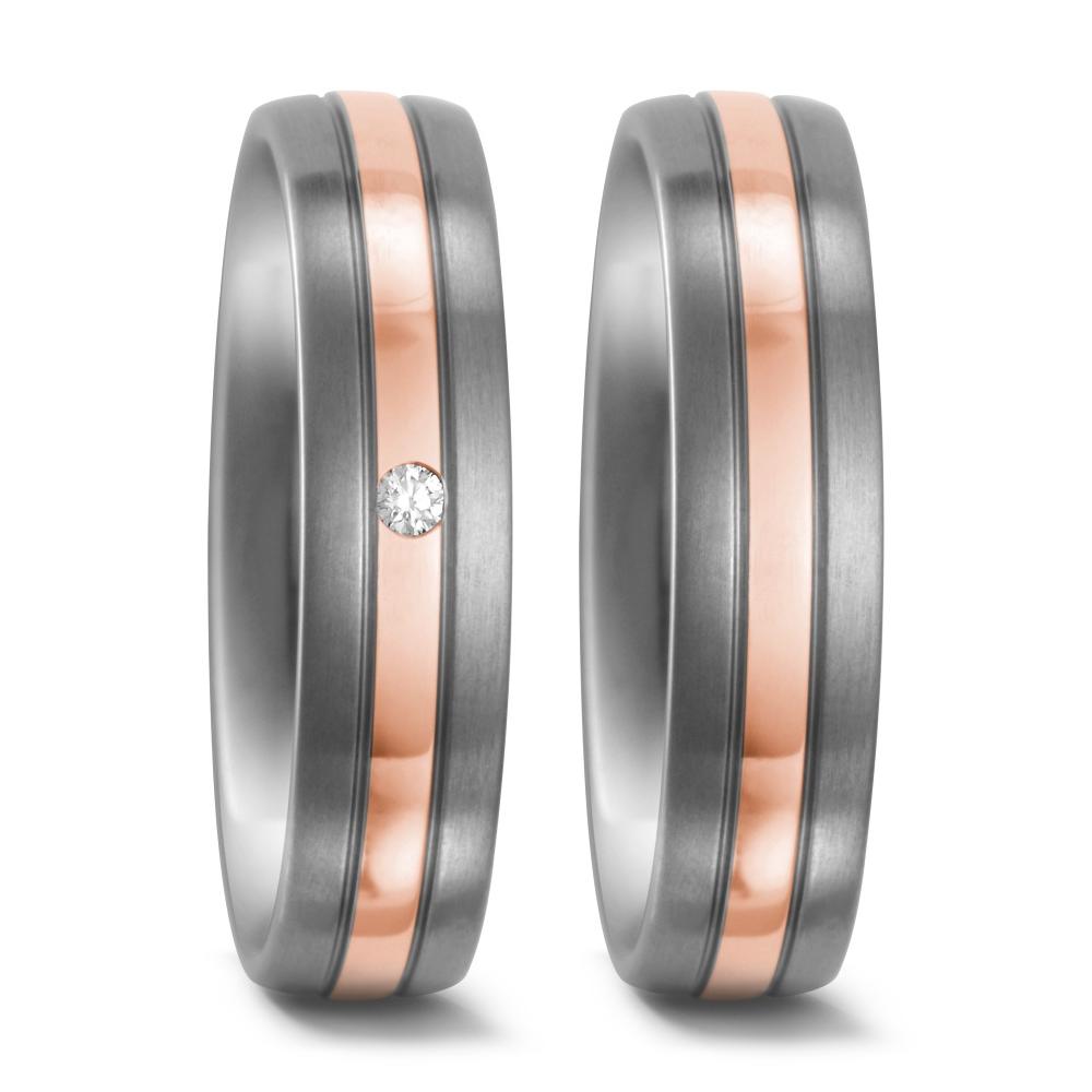 Partnerring Titanium, 750/18K rood goud Diamant 0.02 ct, w-si