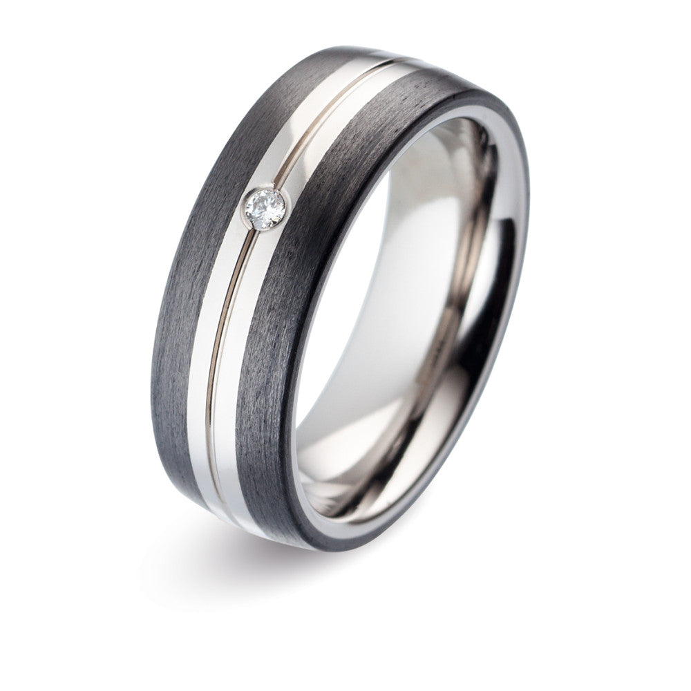Partnerring Titanium, Carbon Diamant 0.03 ct, w-si