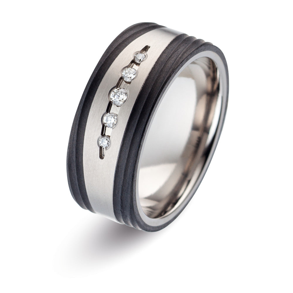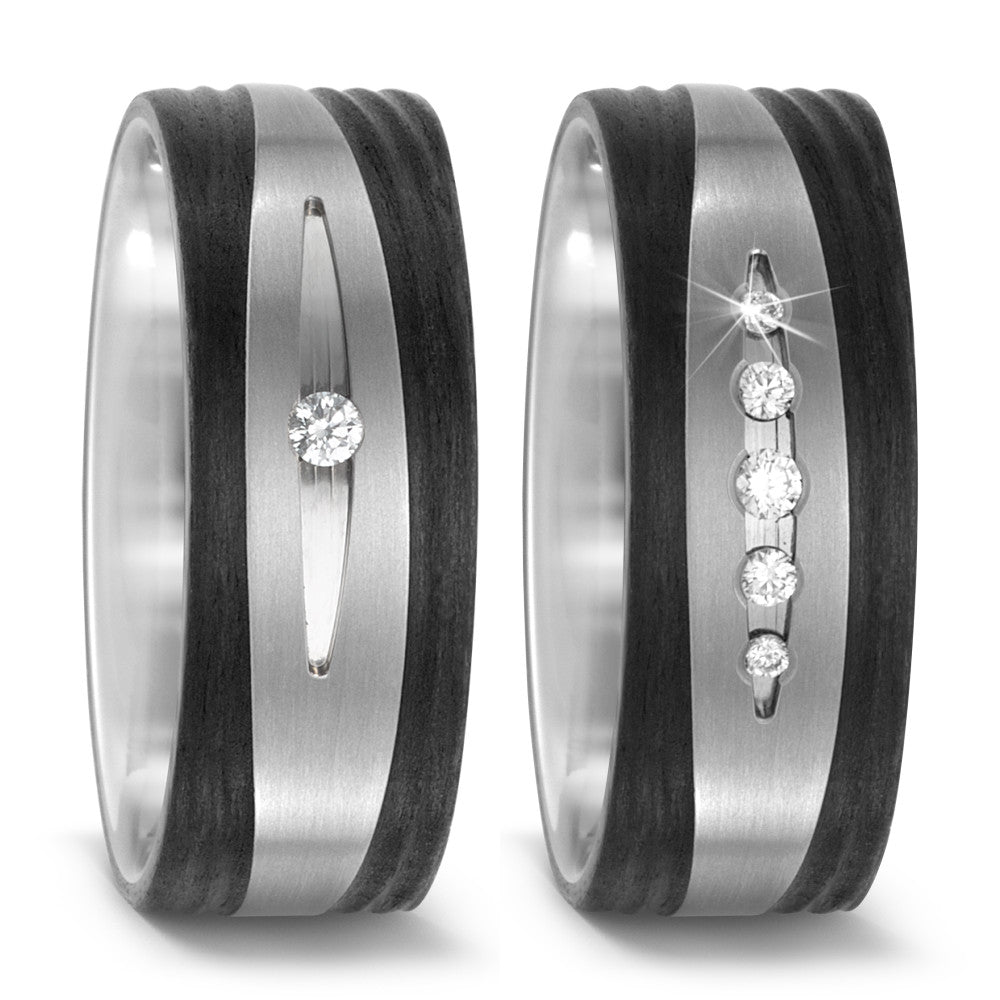 Partnerring Titanium, Carbon Diamant 0.09 ct, 5 Steen, w-si
