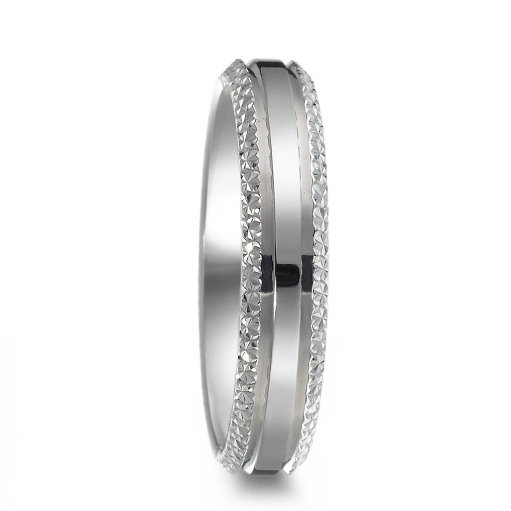 Prachtige ring van 375 witgoud met een verfijnd design. De ring heeft een glanzend middenstuk en een geslepen rand voor een sprankelend effect. Elegant en tijdloos, perfect voor dagelijks gebruik of als speciaal geschenk. Verkrijgbaar in verschillende maten.