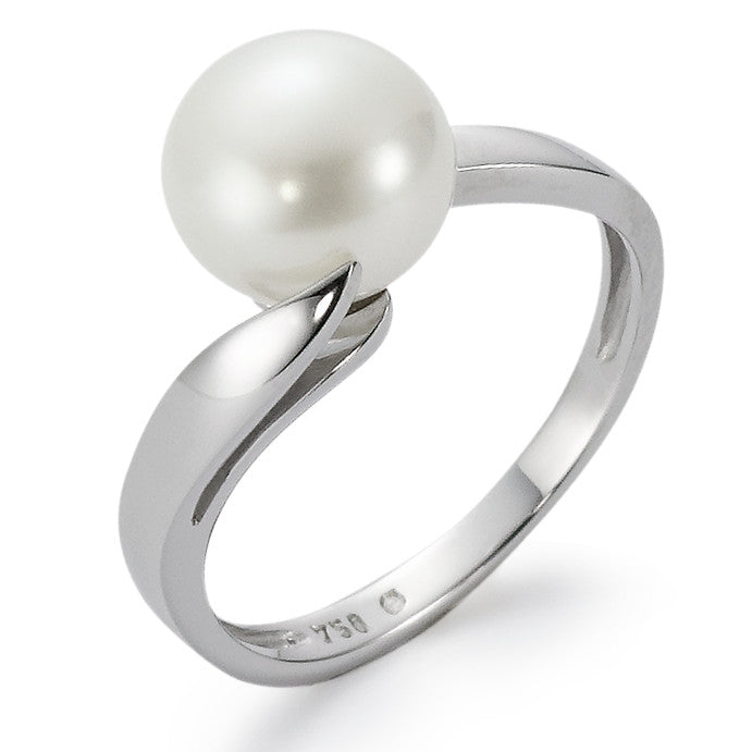 Ring 750/18K witgoud zoetwater Parel, 8.5 mm