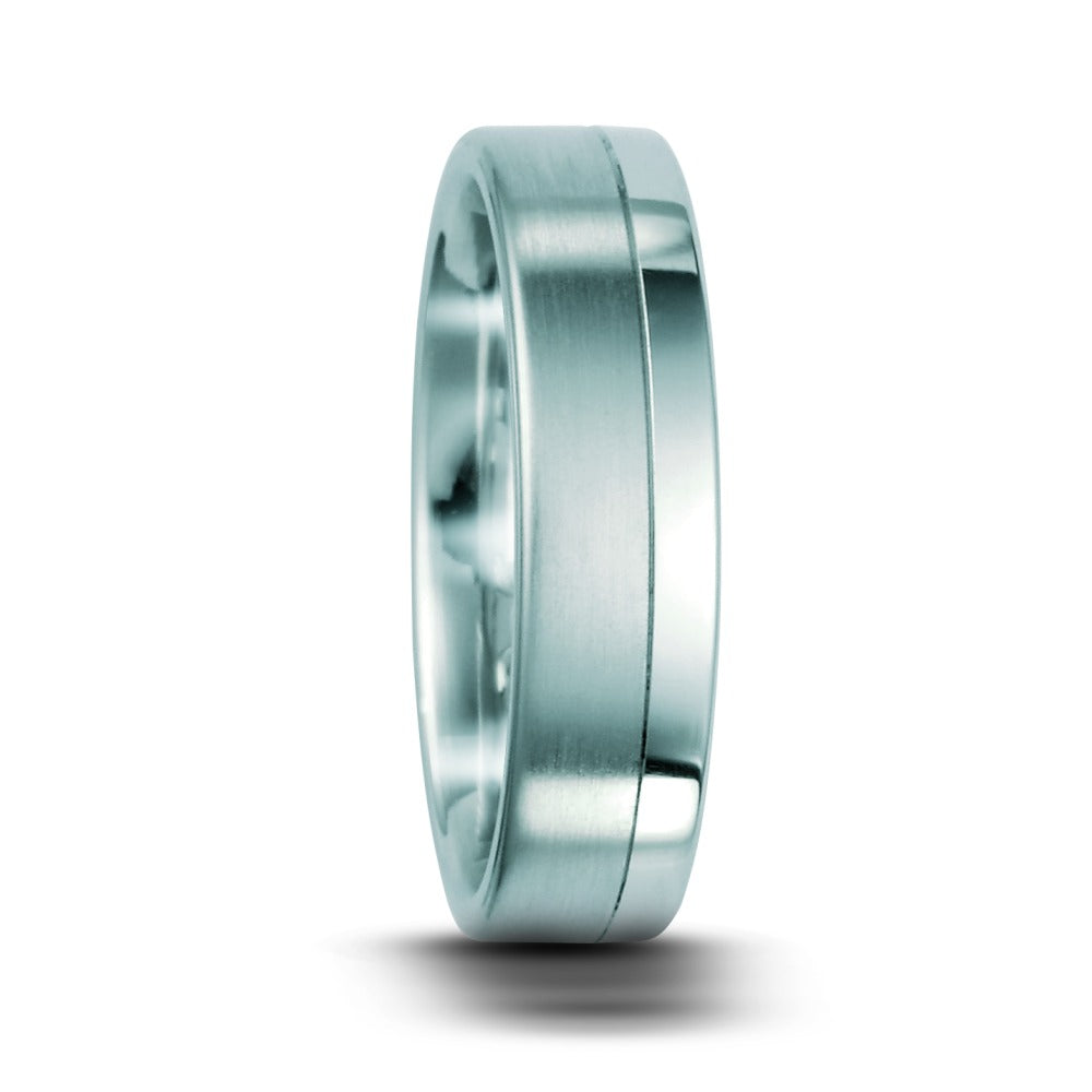 Elegant en tijdloos: deze ring van 950 platina combineert een matte afwerking met een glanzende rand. Het hoogwaardige platina zorgt voor duurzaamheid en een luxe uitstraling. Perfect als trouwring of stijlvolle accessoire voor elke gelegenheid.