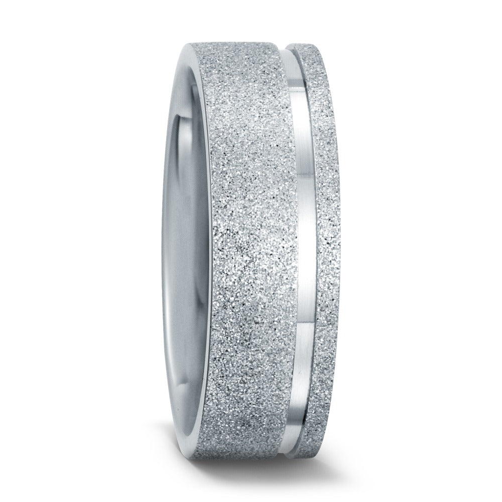 Stijlvolle en duurzame ring van hoogwaardig roestvrij staal. Deze moderne vinger ring heeft een opvallende matte afwerking met een glanzende gleuf, wat zorgt voor een elegant en tijdloos design. Perfect als accessoire voor dagelijks gebruik of speciale gelegenheden.