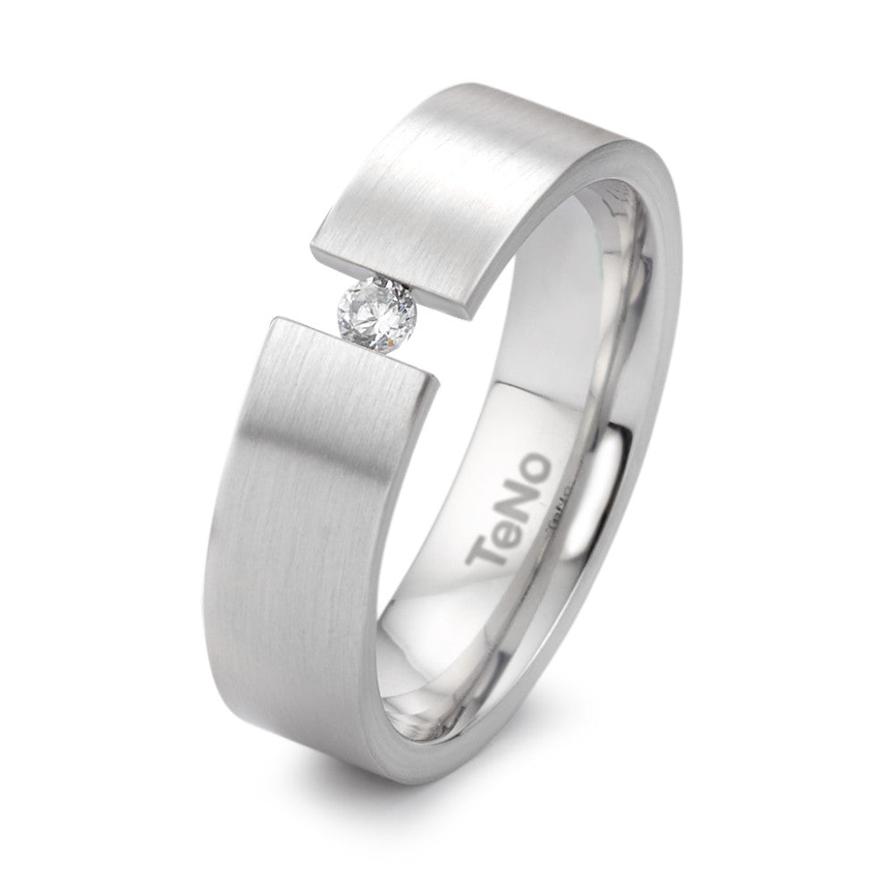 Elegante damesring van hoogwaardig roestvrij staal met een schitterende diamant. Het strakke, moderne design maakt deze ring perfect voor dagelijks gebruik en speciale gelegenheden. Duurzaam, tijdloos en een mooie aanvulling op iedere sieradencollectie.