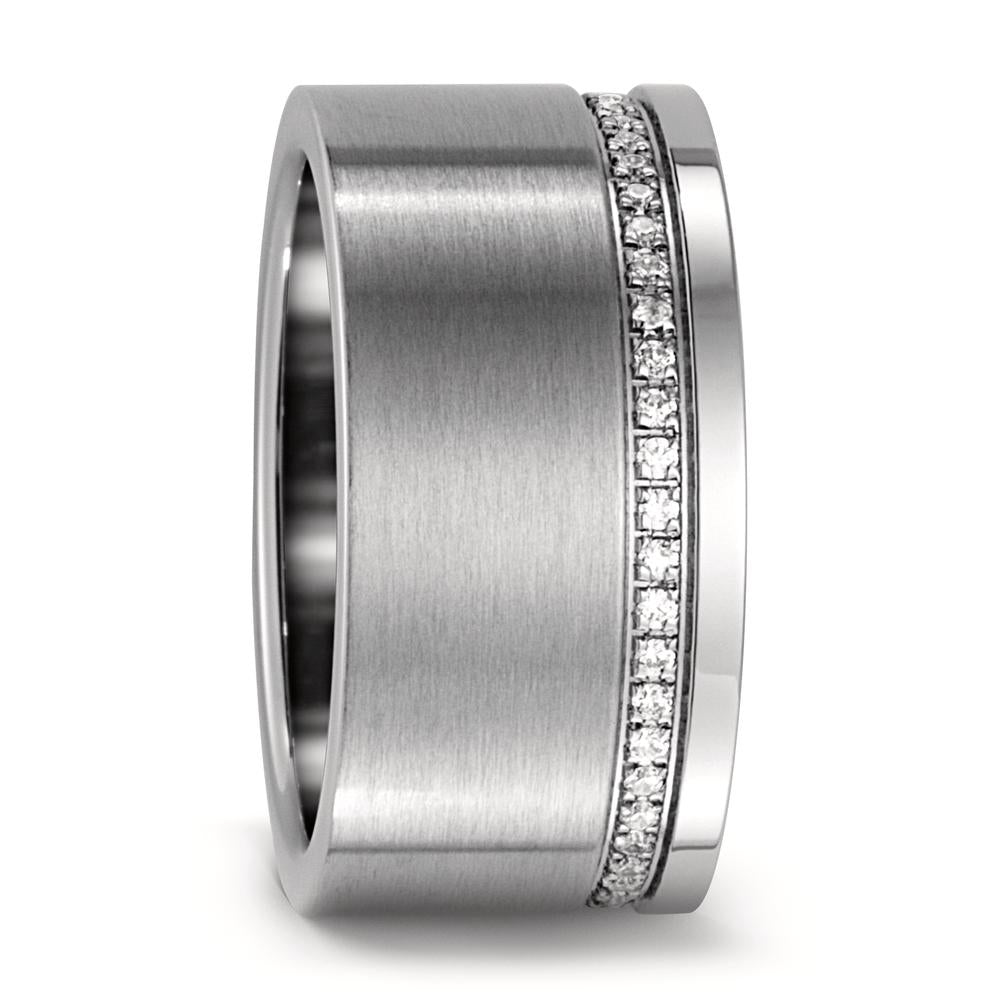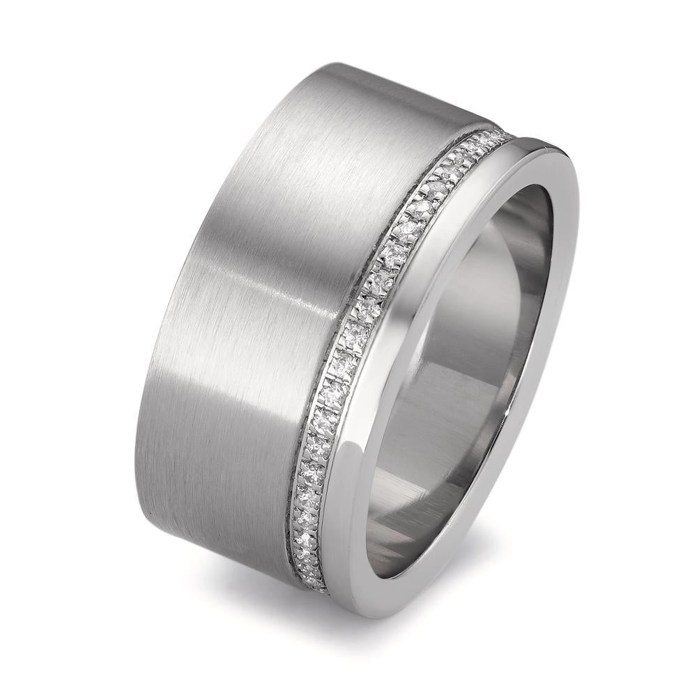 Elegante damesring van roestvrij staal met een fraaie matte afwerking. De ring is voorzien van een rij fonkelende zirkonia steentjes, die zorgen voor een subtiele glans. Een tijdloos en stijlvol sieraad, perfect voor dagelijks gebruik of speciale gelegenheden.
