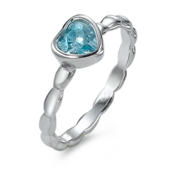 Prachtige meisjesring van zilver met een hartvormige zirkonia in een helder blauwe kleur. De ring heeft een elegante, gebogen band die comfort en stijl combineert. Een perfect sieraad voor dagelijks dragen of speciale gelegenheden, dat elke outfit compleet maakt.