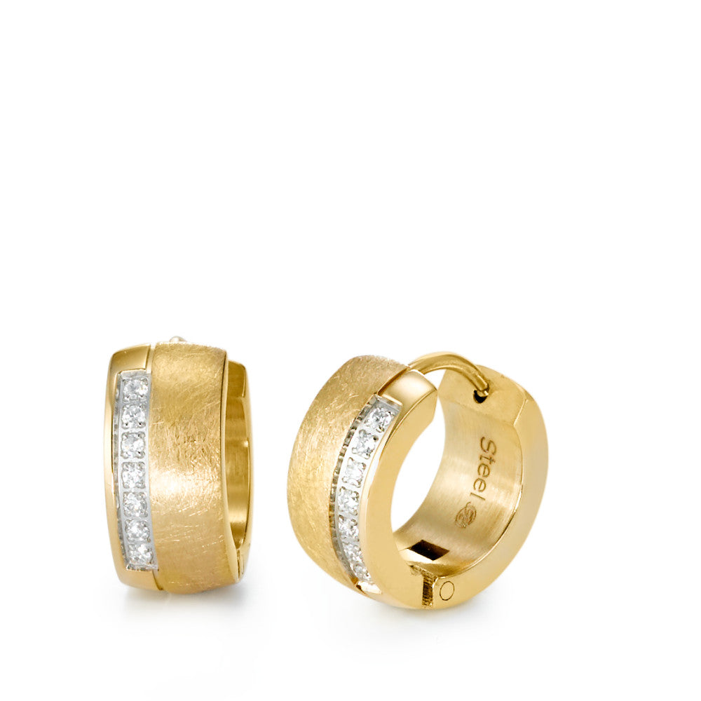 Scharnier oorringen creolen Roestvrijstaal Zirkonia 14 Steen Geel IP-gecoat