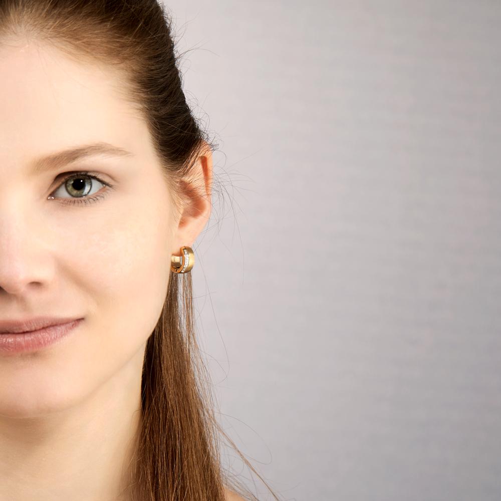 Elegante dames klapcreolen van hoogwaardig roestvrij staal met een stijlvolle goudkleurige afwerking. Versierd met fonkelende zirkonia steentjes die zorgen voor een schitterende look. Perfect voor zowel dagelijks gebruik als speciale gelegenheden. Duurzaam en comfortabel te dragen.