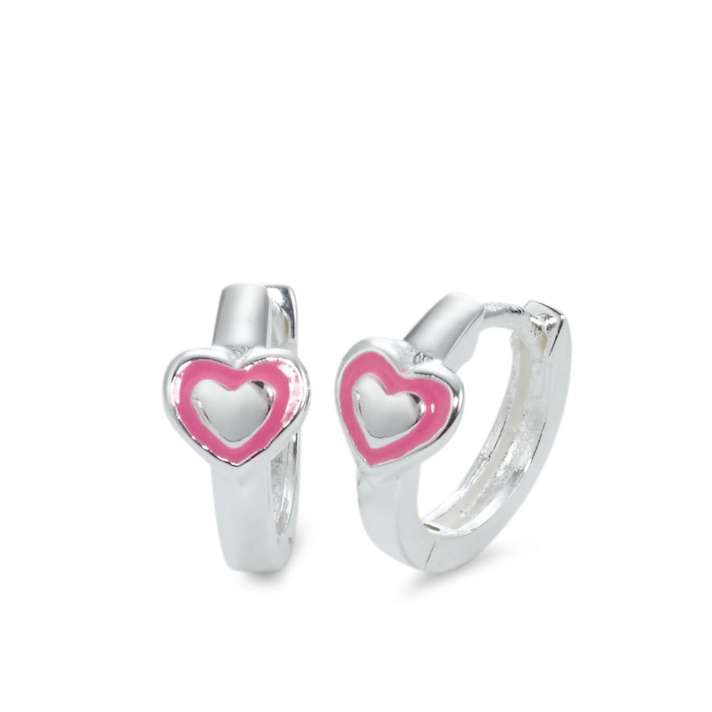 Schattige klapcreolen voor meisjes, gemaakt van zilver met een lief roze hartje. Perfect voor dagelijks gebruik en als cadeau. Makkelijk te dragen en stijlvol, deze oorbellen geven een speelse touch aan elke outfit. Een tijdloos en charmant accessoire voor jonge meisjes.