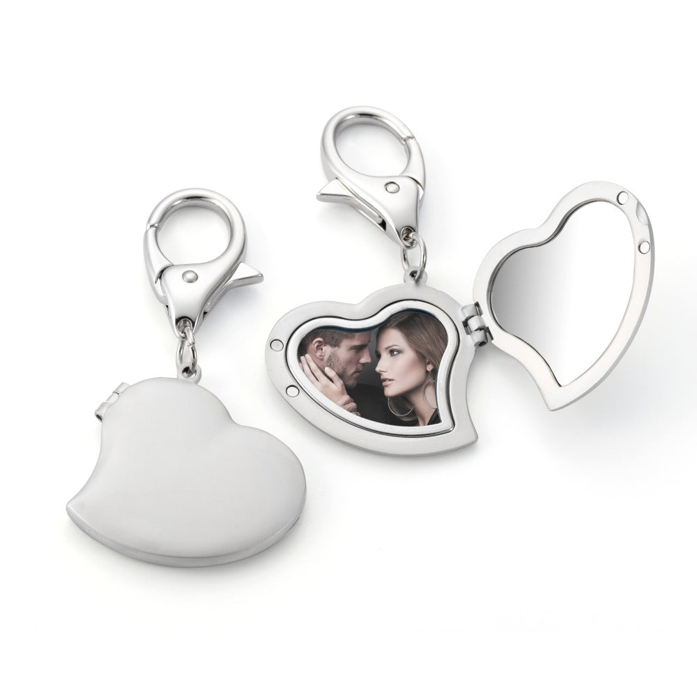 Stijlvolle metalen sleutelhanger in hartvorm met een persoonlijk tintje. Open het hart om je favoriete foto zichtbaar te maken en draag zo je dierbaren altijd bij je. Perfect als romantisch cadeau of voor eigen gebruik. Compact en duurzaam ontwerp.