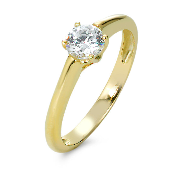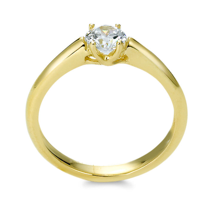 Elegante damesring van 375 geelgoud met een sprankelende zirkonia solitair steen. Tijdloos ontwerp dat perfect is voor dagelijks gebruik of speciale gelegenheden. Een schitterende keuze voor wie houdt van klassieke en verfijnde sieraden.